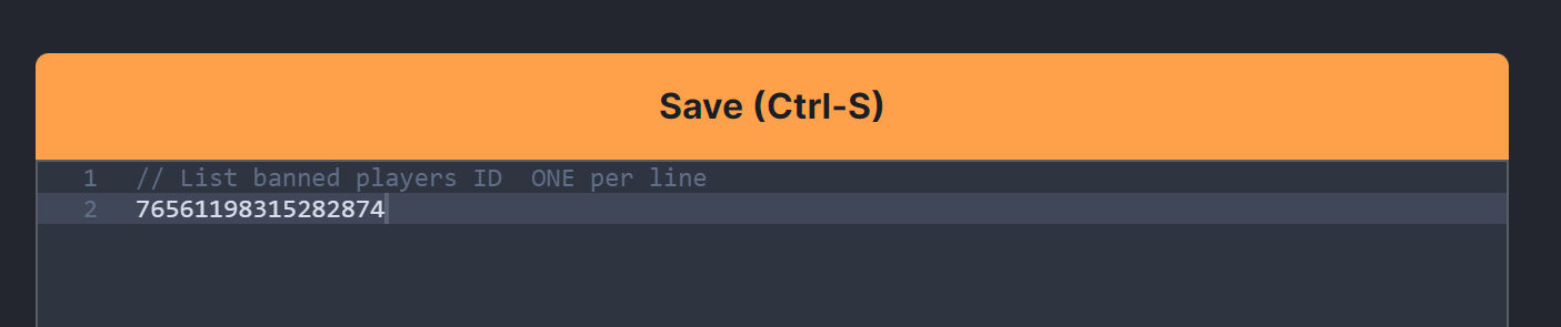 SaveDir/bannedlist.txt - In order to have a player banned, simply paste the SteamID64 of the player into the file (one ID per line). You find the SteamID64 of the player you intend to ban here.