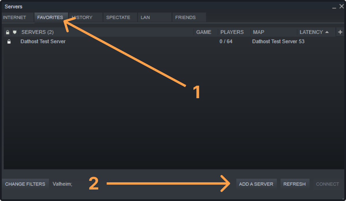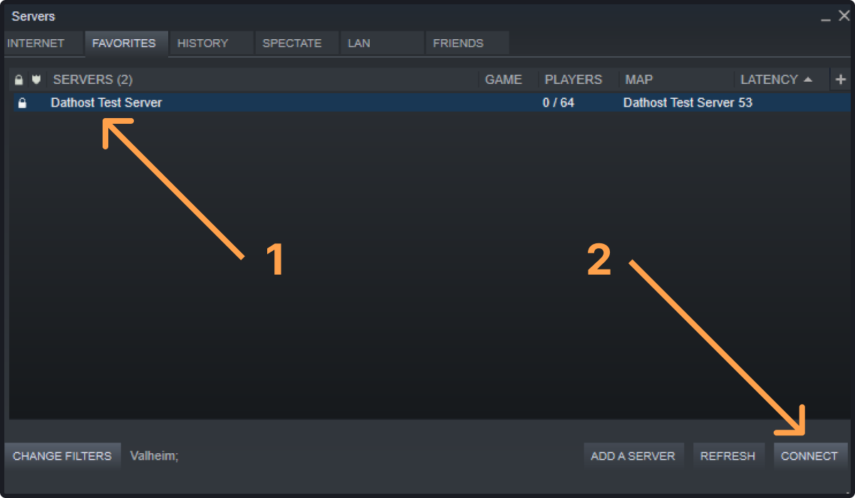 Note: If you have a lot of favorite servers, try clicking Change Filters and set the game to Valheim to make it easier to find.