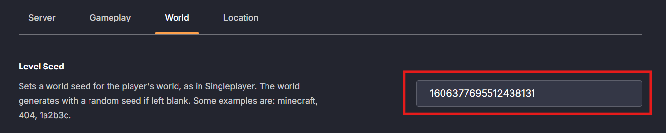 - Locate the Level Seed in the Settings Tab / World