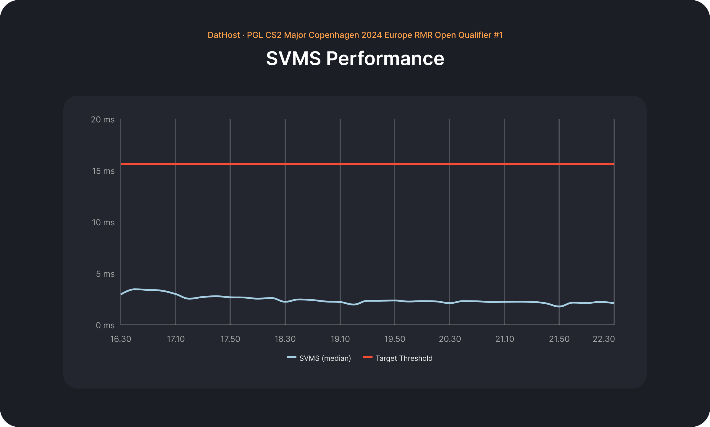 SVMS Value: This metric holds immense significance in Counter-Strike server performance. It represents the time, measured in milliseconds, needed for a server simulation step per networked frame. To ensure seamless gameplay, the SVMS value needs to be kept below 15.625ms. This enables the server to process 64 packets per second, matching the rate of a Counter-Strike 2 server.