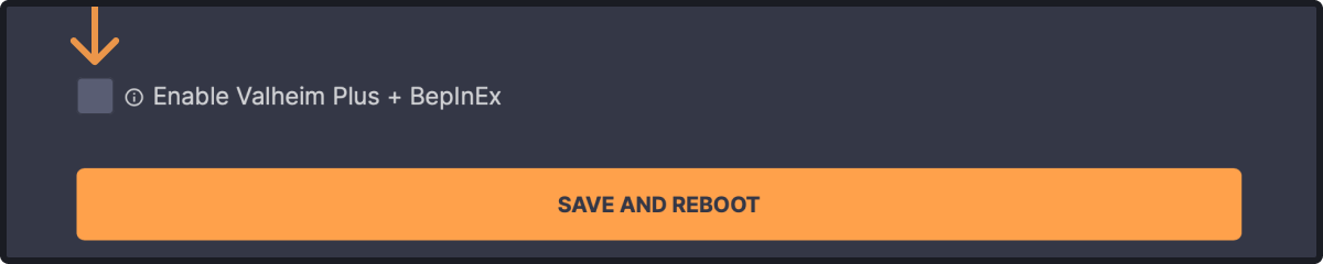 - Scroll down and tick the box for Enable Valheim Plus + BepInEx and click Save.