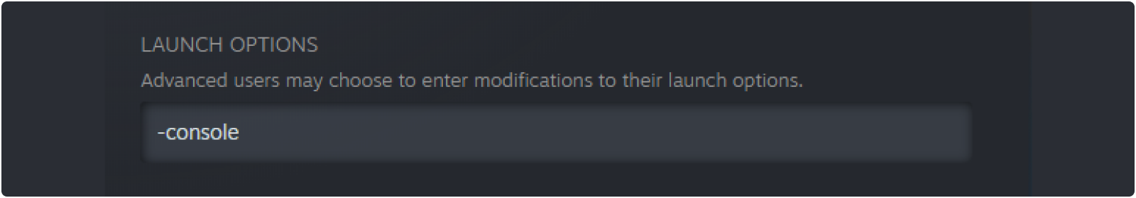 - Type -console into your Launch Options